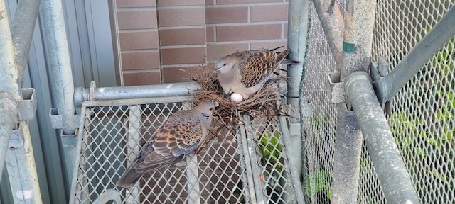キジバトが巣立ちました 足場にキジバトが巣を作り、約1か月の間、見守ってまいりましたが、このたびヒナが無事に巣立ち、元気に飛び立っていきました。 ヒナの巣立ちを温かく見守り、作業の調整にご協力いただきました協力会社の皆さまに、心より感謝申し上げます。 Screenshot